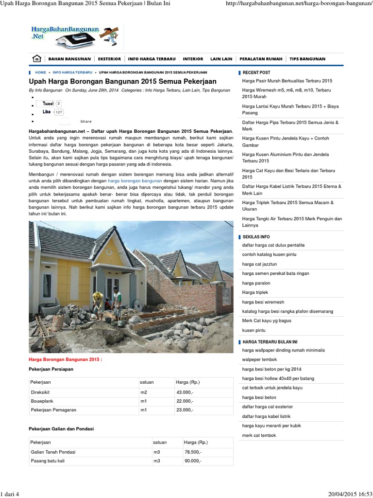 Setiap daerah tentunya memiliki harga. Daftar harga bahan bangunan terkini sajian semua tersaji dalam update daftar harga bahan bangunan di depan anda. Agar tak boros ketika membangun atau merenovasi ruangan. Demikian harga bahan bangunan terbaru yang dikumpulkan dari berbagai sumber. Kualitas bangunan salah satunya di tentukan juga dengan pemilihan bahan material bangunannya. Daftar harga tenaga kerja dan bahan no. Daftar harga satuan barang dan jasa.pdf. See more of daftar harga bahan bangunan 2015 on facebook. Daftar bahan & upah 2015. Selain info bahan bangunan 2015, silahkat lihat homepage kami untuk tips dan informasi renovasi rumah. Bentuknya seperti bata, persegi empat dengan ukuran panjang 19 cm, lebar 19 cm, dan tebal 8 cm. 27 april 2021 • 7 mins read. • spesifikasi barang ukuran harga ( rp.) • jabesmen gelombang 150x105 mm 40.000
